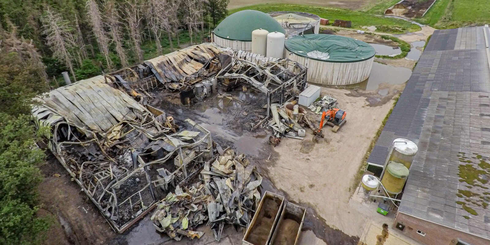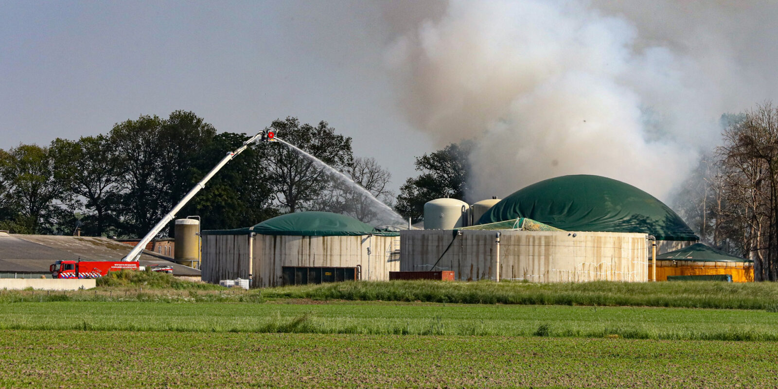 Op zaterdagmiddag 1 juni 2019 breekt brand uit in een biovergistingsinstallatie van een pluimveebedrijf bij Dalfsen. Geoffrey Bos is de eerst aankomende Officier van Dienst. Hij vertelt: ‘Rond vier uur ’s middags kreeg ik de melding van een brand in een mestvergistingsinstallatie. Toen ik bij het wegrijden uit mijn wijk een hoge brug over reed, zag ik de rookkolom van de brand, hemelsbreed een kleine 20 kilometer verderop, al omhoog komen. Aangezien ik het object en de omgeving kende, heb ik direct opgeschaald. Daarnaast had ik eerder die dag ook al een incident bij een andere biovergistingsinstallatie, dus de kennis en risico’s van dit soort objecten had ik nog redelijk paraat.’
