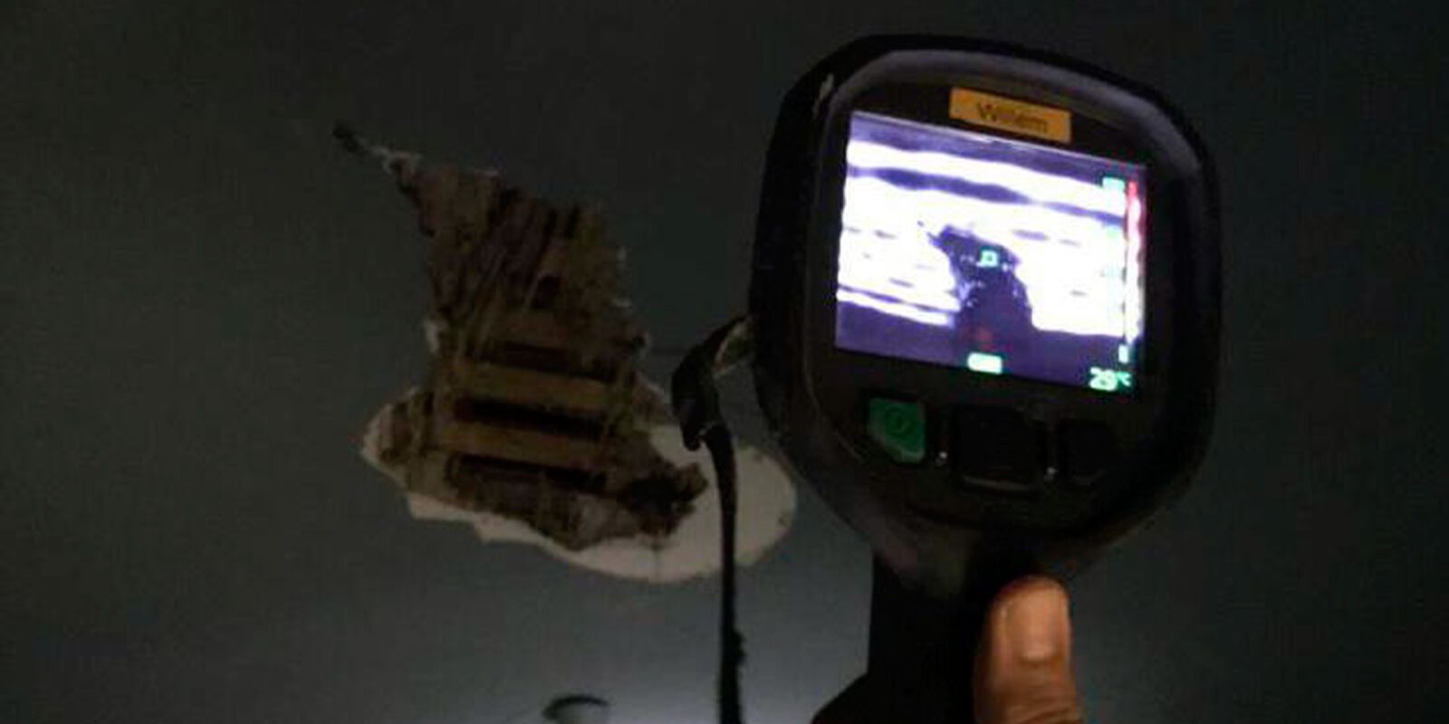 De brandweer wordt gealarmeerd met de melding ‘brandgerucht’, maar bij aankomst in de woning is er van brand niets te bespeuren. Met de warmtebeeldcamera worden bijzondere gloeipatronen op het plafond ontdekt. Daarom wordt er een verkenning gedaan bij de bovenburen. Maar daar wordt geen oorzaak aangetroffen.