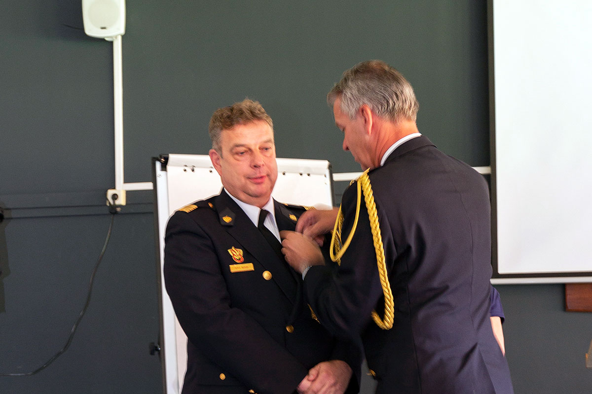 Ook kwam het landelijk specialisme GBO-SO Natuurbranden tot stand. Wevers: ‘Jij gaf een kwaliteitsimpuls aan natuurbrandbeheersing en -bestrijding binnen Nederland door het opstellen van het Bronnenboek. Hiermee werd onder andere de basis gelegd voor herziening van zowel de landelijke als regionale les- en leerstof. De LVN werd het Nederlandse kennisplatform op het gebied natuurbrandbestrijding binnen het taakveld operationele voorbereiding. Ook stuurde je continu aan op internationale afstemming door op te treden als kennis en verbindingsplatform, wat leidde tot vijf (semi-) wetenschappelijke onderzoeken. Daarnaast ben je actief betrokken geweest bij het doen van onderzoek naar ontstaan van natuurbranden en advisering hoe deze te bestrijden en heb je samen met de leden van de LVN de randvoorwaarden gecreëerd zodat de LVN in 2021 naadloos overging naar de nieuwe organisatievorm van Brandweer Nederland. Kortom, ik wil je namens onze collega’s ontzettend bedanken voor deze jarenlange bijdrage op het gebied van natuurbrandbeheersing. Geniet nu van je welverdiende pensioen. Het is je gegund!’
