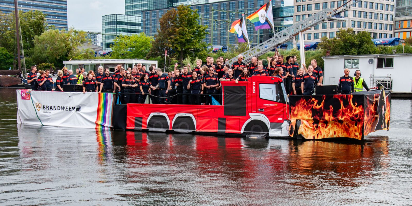 De deelname van de brandweer aan de pride heeft naast dat het leuk is ook een serieuze ondertoon. De brandweer en veiligheidsregio’s zijn er voor iedereen, wat maakt dat het belangrijk is dat iedereen zich welkom kan in de organisaties. Nu op de boot, maar ook juist op de kazerne en op straat. Directeur van de Veiligheidsregio Rotterdam-Rijnmond, Arjen Littooij, voer ook mee en beaamt dit: ‘Er zijn kansen voor echt iedereen, en het maakt ábsoluut niet uit wie je bent. Daarom vind ik het ook belangrijk om als directeur van de Veiligheidsregio hier te zijn. Om te laten zien dat ook de leiding, het management, dit echt ondersteunt.’