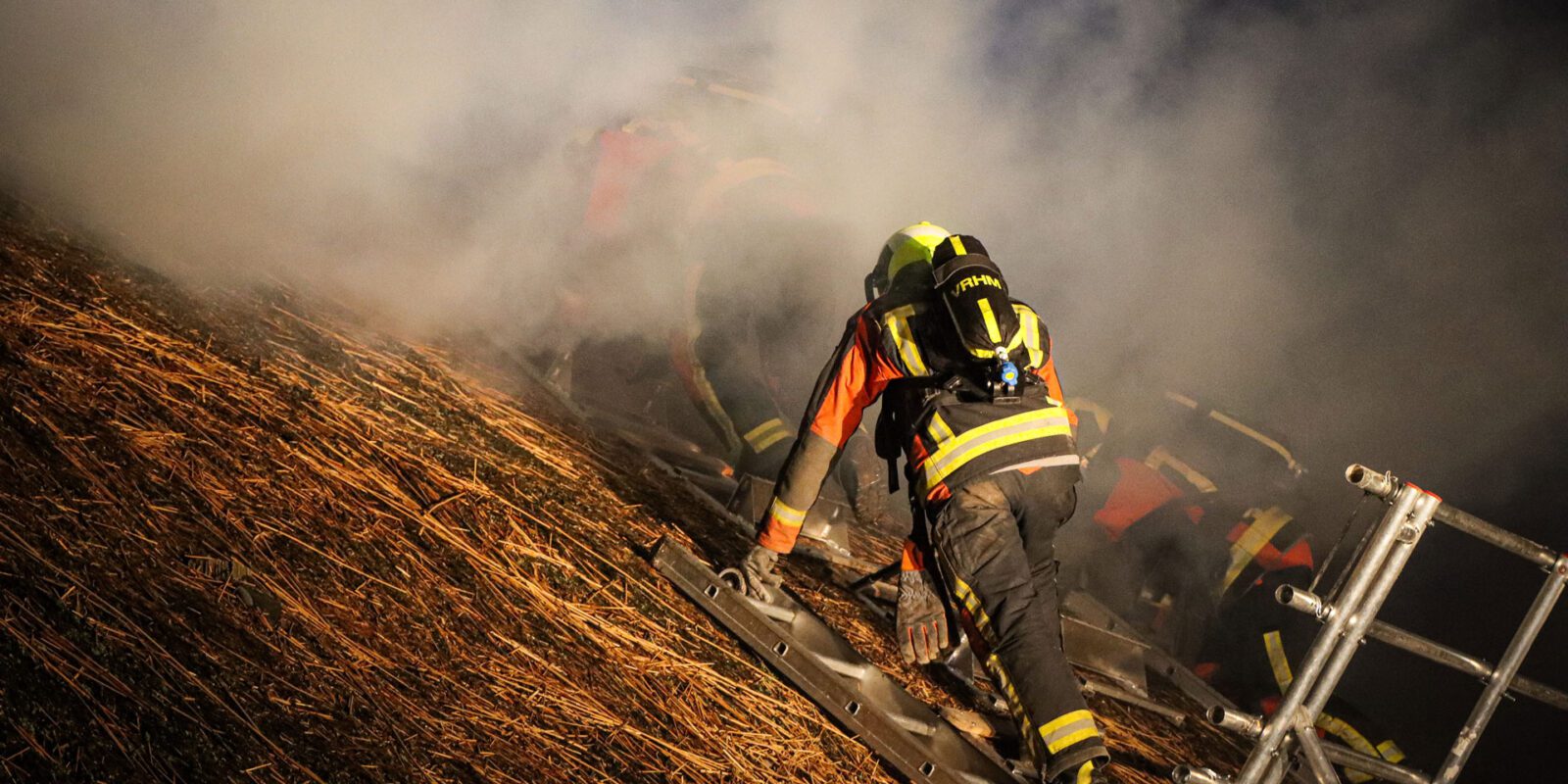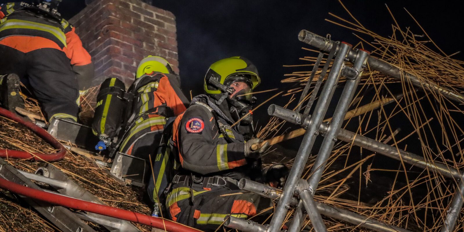 ‘Wij bieden de lokale eenheid ondersteuning. En zoals bij ieder brand draait het om samenwerking. Wij kunnen niets doen als de eerste eenheid binnen in het pand geen blussing heeft gedaan. De teams gaan dan het dak niet op. Simpelweg omdat het vuur anders onder het dak, dus onder je voeten, door loopt,’ vertelt Tim Brinkman van team Krimpen aan de Lek.