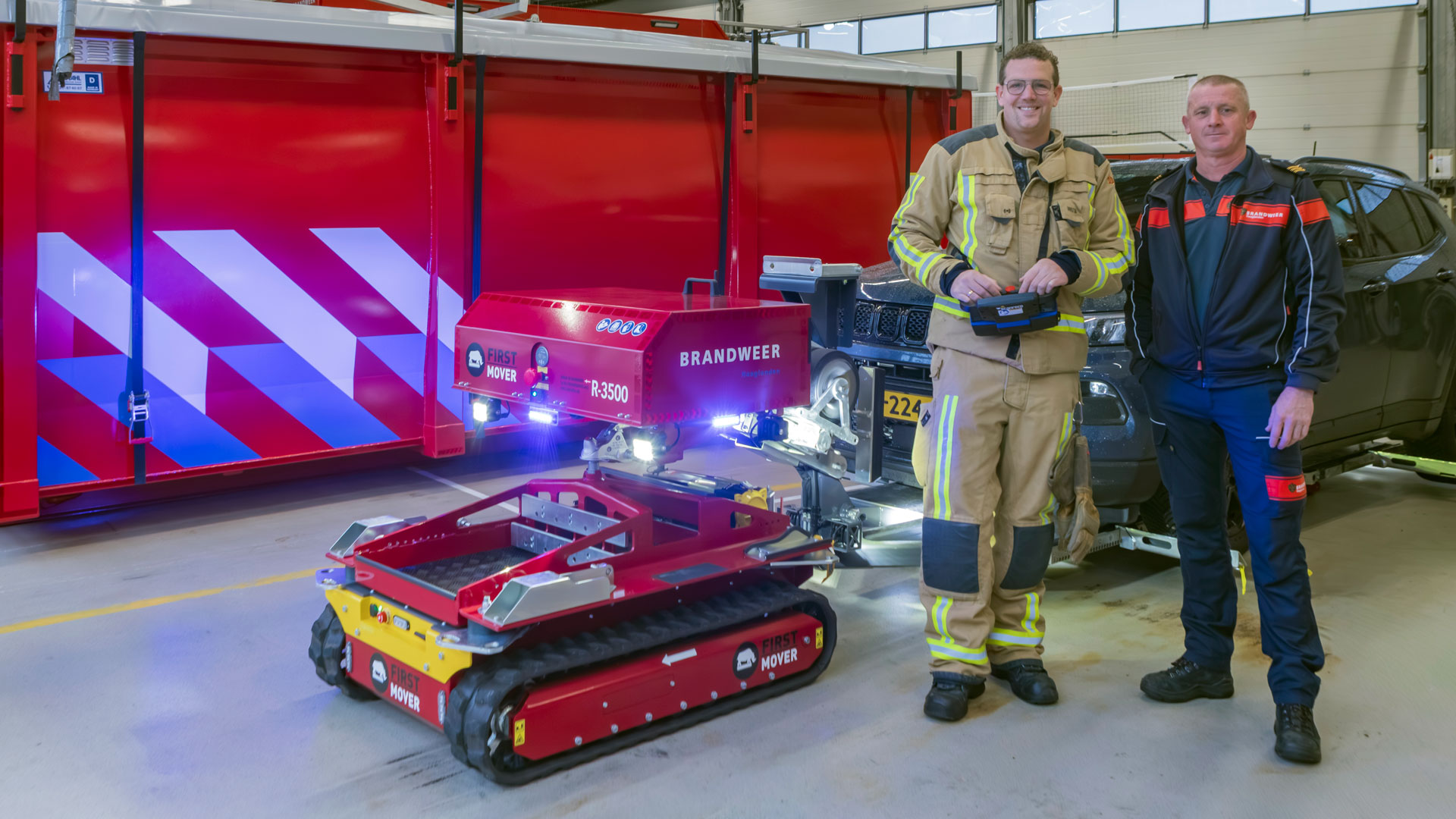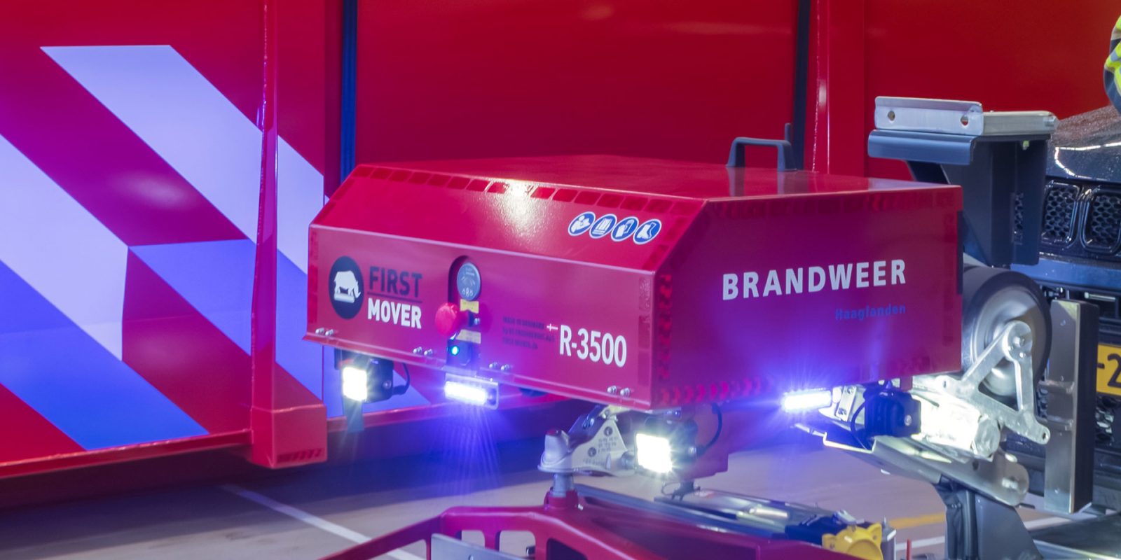 De First Mover is nog vrij nieuw op de markt. De leverancier is nauw betrokken bij het gebruik en de toepassing ervan door Brandweer Haaglanden. “Het op afstand bestuurbare onderstel haal je bijvoorbeeld simpel onder de First Mover vandaan en kan worden voorzien van andere toepassingen. De fabrikant had er tijdens de trainingsdagen als test een blusmonitor (waterkanon) opgezet. Zo konden we er ook mee blussen. Deze mogelijkheid wordt nu verder uitgewerkt”, vertelt Leendert. “We onderzoeken nu wat er nog meer met het onderstel mogelijk is. Het is echt een apparaat met potentie en dat maakt het werken ermee leuk!”
