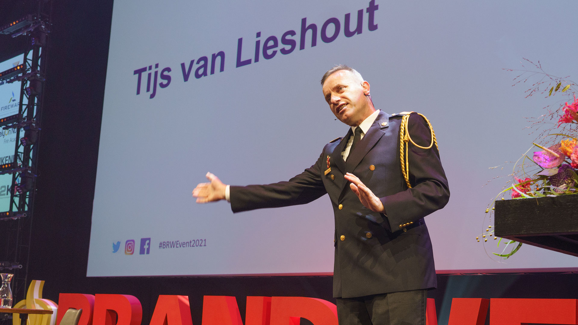 Centraal stond het brandweergevoel, die hij mede aan de hand van tien actuele brandweervraagstukken en dilemma’s doorliep. Daarbij sprak hij over de regionale ‘couleur locale’, het feit dat veiligheidsregio’s en brandweer naast elkaar bestaan en de dure plicht om de identiteit en reputatie van de brandweer goed te beschermen. ‘Dat is wat u van mij mag verwachten, dat u van de Raad Commandanten en Directeuren Veiligheidsregio’s mag verwachten. En we zullen ook in het veld ophalen of er boven of onder water nog meer leeft. Er is bij de brandweer veel waard om te beschermen.’ Eén ding wilde Van Lieshout eruit lichten: PTSS. ‘Het is mijn stellige mening dat heel veel brandweermensen, beroeps en vrijwillig, dit meemaken. We hebben met elkaar in heel Nederland nog een lange weg te gaan hebben om mentale gezondheid net zo belangrijk vinden als fysieke, en daar ook iets aan te gaan doen. De PPMO is nu te eenzijdig.’