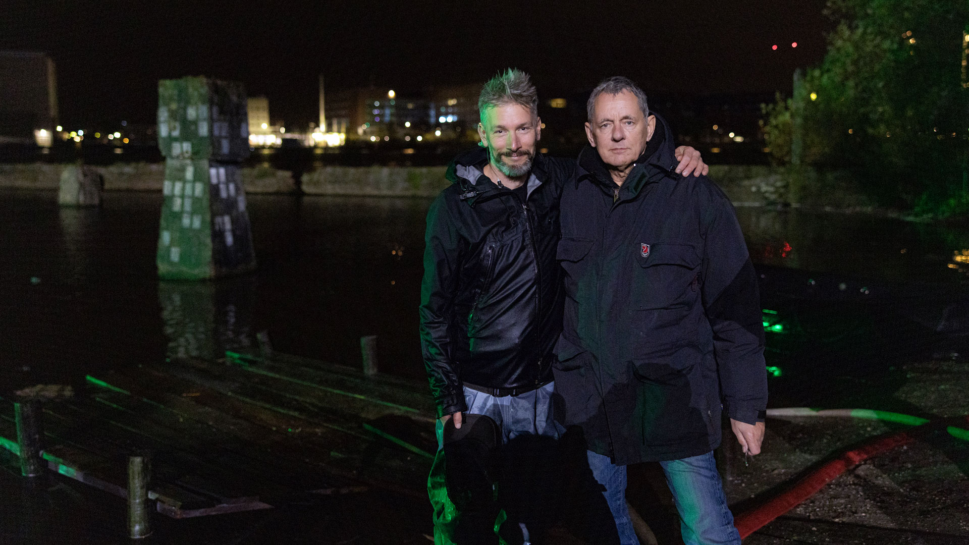 Links Koert Scholman (onze brandweerprofessional) en rechts regisseur Dick Maas.