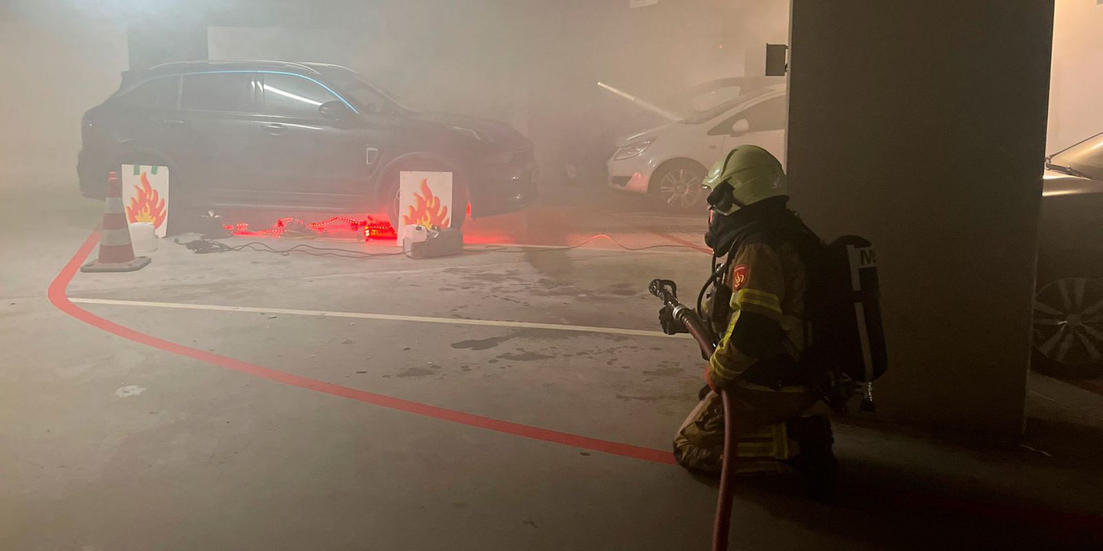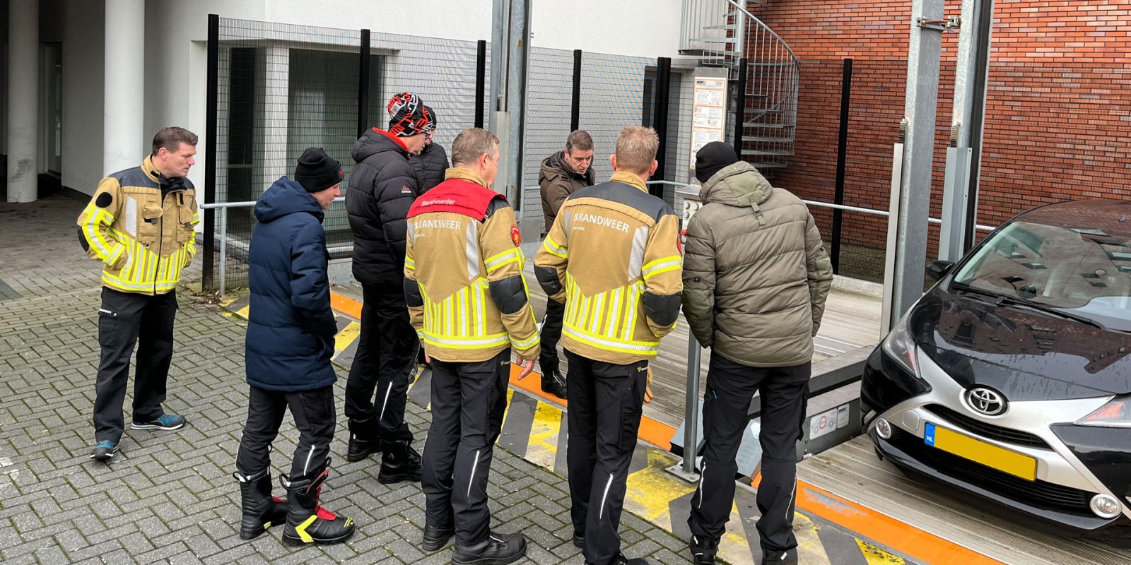 Afgelopen jaar was het thema ‘Parkeergarages onder woongebouwen’. De oefendag startte met theorie over de brandveiligheid van parkeergarages op basis van de kenmerken mens, brand, gebouw et cetera. Kennen we de risico’s van parkeergarages onder woongebouwen? En weten we welke effecten er ontstaan als er brand uitbreekt in een (elektrische) auto in de garage? De collega’s van Brandveiligheid gaven inzicht in wet- en regelgeving, evenals genomen (brand)veiligheidsmaatregelen. Ook werden waardevolle lessen van eerdere incidenten onderling gedeeld.