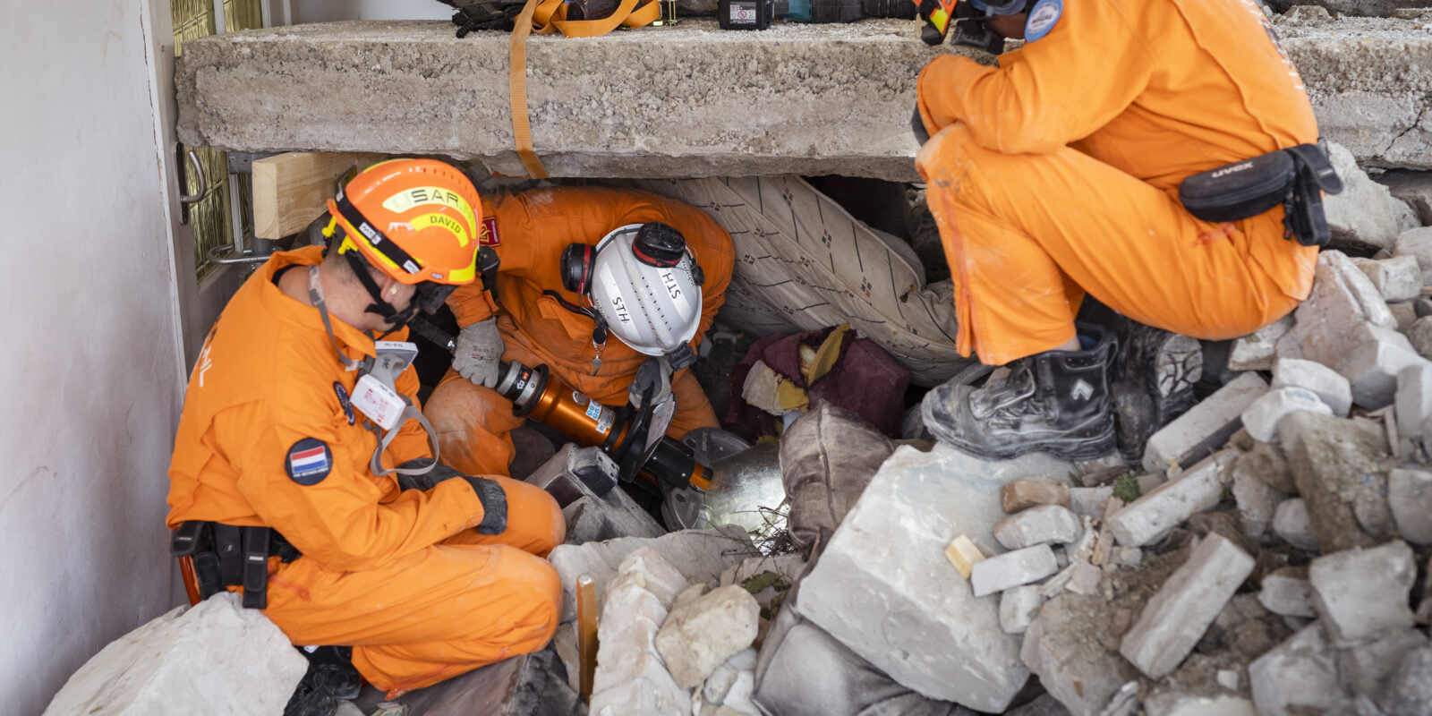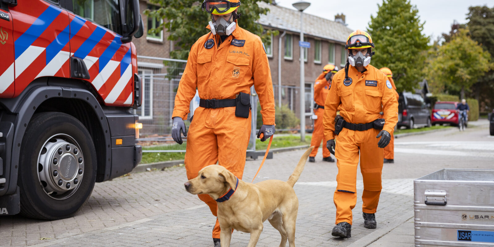 Als er behoefte is aan nog meer specialistische kennis en nog zwaarder redgereedschap dan komt USAR.NL om de hoek. Een USAR-reddingsgroep bestaat uit tien personen, twee speurhonden en materieel. In totaal zijn er 4 USAR-teams die bestaan uit mensen die beroepsmatig werken voor politie, brandweer, ambulance en defensie. ‘Naast aanvullende technische hulpmiddelen hebben wij ook speurhonden en bouwkundigen.’ De teams worden vaak ingezet in het buitenland, maar komen ook in Nederland in actie. ‘Ook hebben we speciaal opgeleide ambulanceverpleegkundigen. Wij zijn getraind om in de eerste plaats hulp te verlenen aan de reddingswerkers en de honden, maar ook om in de puinhopen eerste hulp aan een bedolven slachtoffer te bieden.’ vertelt Conny Wachtmeester, zelf ambulanceverpleegkundige en reddingswerker bij USAR.nl.