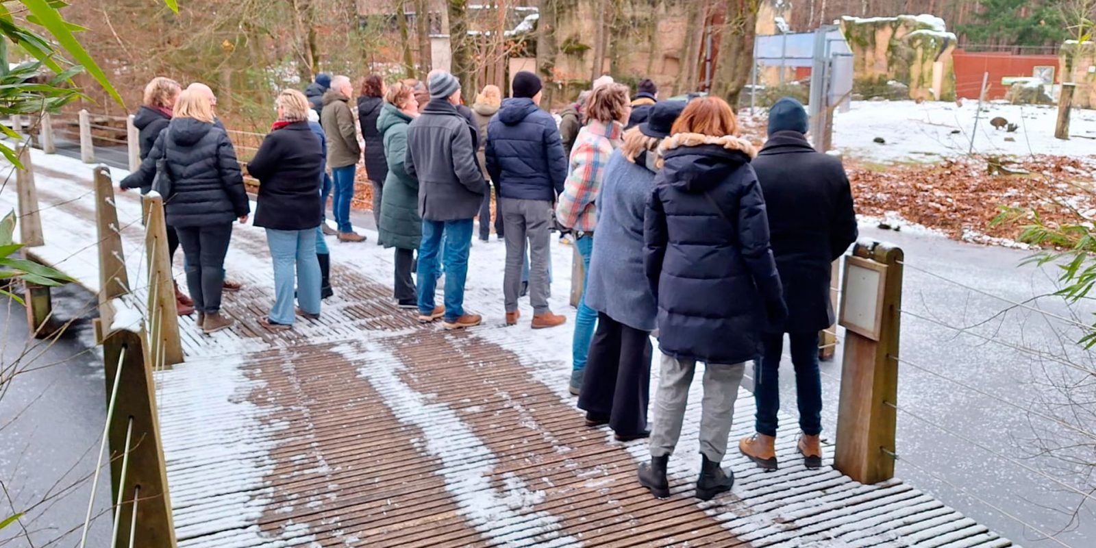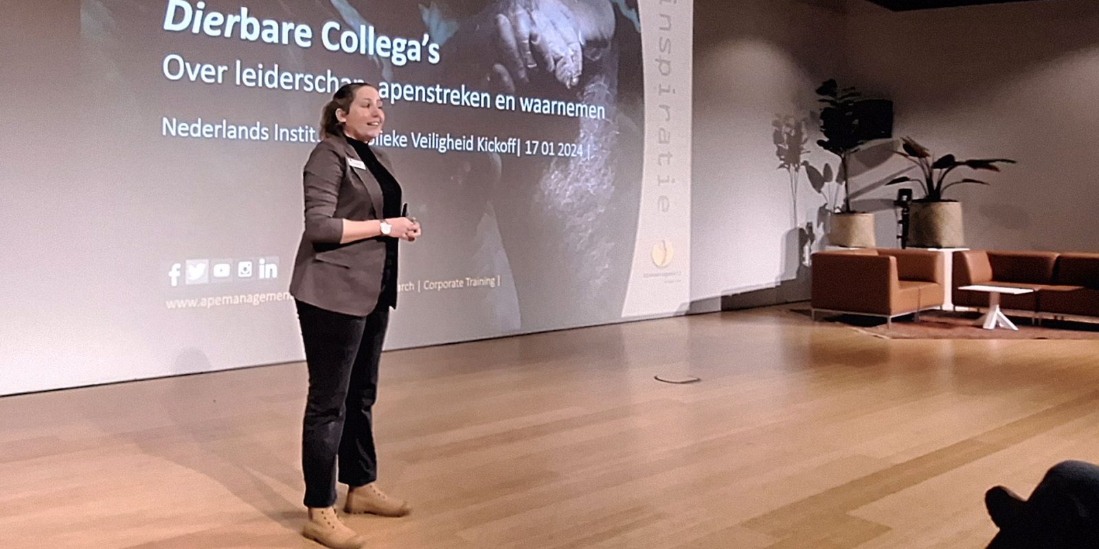 Tijdens het observeren van de verschillende apen die in Apenheul rondslingeren, leerden de deelnemers na te denken over hoe je nu goed kunt observeren. Mariska Achtereekte van de Veiligheidsregio Twente viel al snel iets op: “Je neemt je eigen referentiekader mee en zo kijk je naar datgene wat je observeert. Bijvoorbeeld de berberapen die we net zagen, die stonden allemaal heel alleen te eten en leken niet bezig te zijn met elkaar. Daar zou je van kunnen zeggen dat ze teveel solistisch bezig zijn en weinig samenwerken. Maar toen hoorden we dat ze alleen tijdens het eten verspreid en alleen zitten. Het zijn apen die verder juist heel veel knuffelen en veel samen doen. De berberapen kun je niet vergelijken met orang-oetans die er juist wél van houden om alleen te zijn. Bij een visitatie is dat natuurlijk ook zo. Als je op bepaalde dag gaat visiteren kan het er heel anders uitzien dan op een andere dag. En de ene veiligheidsregio is de andere niet. Dat is wel even een eyeopener.”