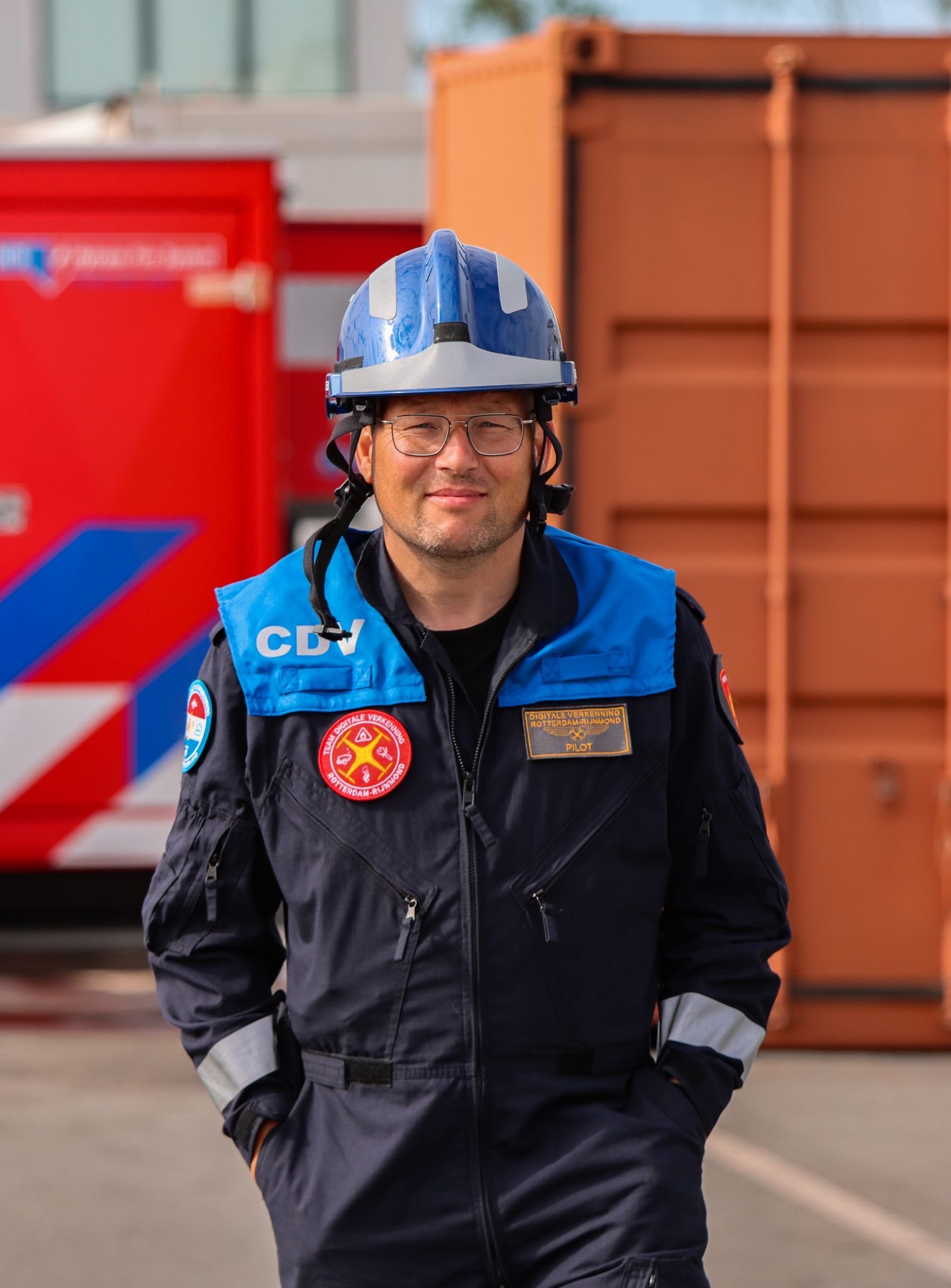 Bram begon als vrijwilliger in Vlaardingen en groeide door bij de Gezamenlijke Brandweer. Hij werkte met waterscooters, vanuit helikopters en later met drones. “Beeldvorming helpt de besluitvorming, we lossen incidenten sneller op en beperken schade. Soms kun je zelfs mensen sneller vinden.”