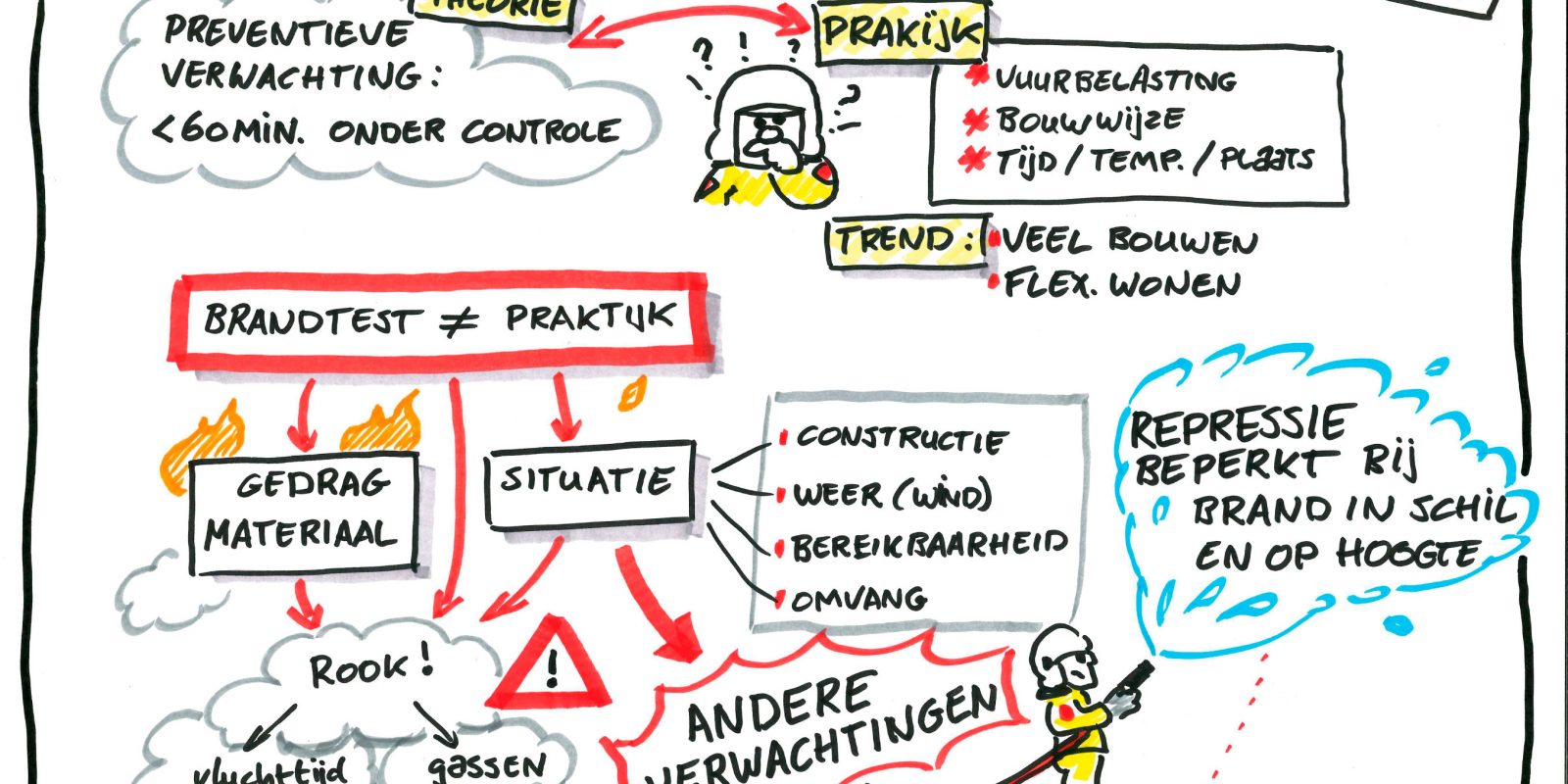 Wat wordt verstaan onder preventieve verwachtingen en repressieve werkelijkheid? Het gaat dan om situaties waarbij de incidentbestrijders de ene keer kunnen bouwen op brandpreventieve voorzieningen als een brandscheidende constructie, en de andere keer verrast worden doordat de brand bijvoorbeeld van buitenaf doorslaat naar het dak en zich dan razendsnel verspreid naar meerdere woningen.