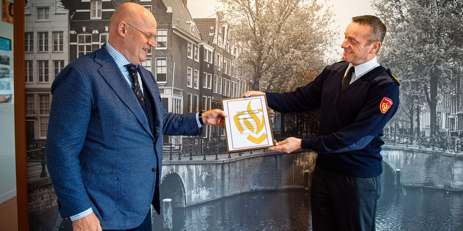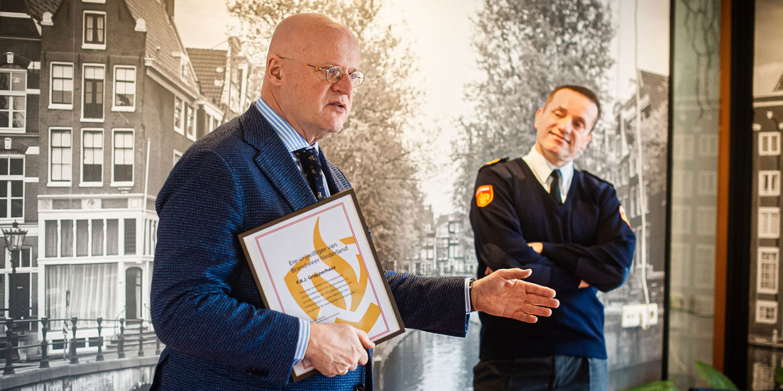 Begin deze maand schreef Grapperhaus een handgeschreven brief aan alle brandweercollega’s. In kazerne Osdorp in Amsterdam sprak Tijs van Lieshout de scheidend minister van J&V toe en benoemde hem – namens alle brandweermannen en vrouwen – tot ere-brandweervrijwilliger voor het leven.
