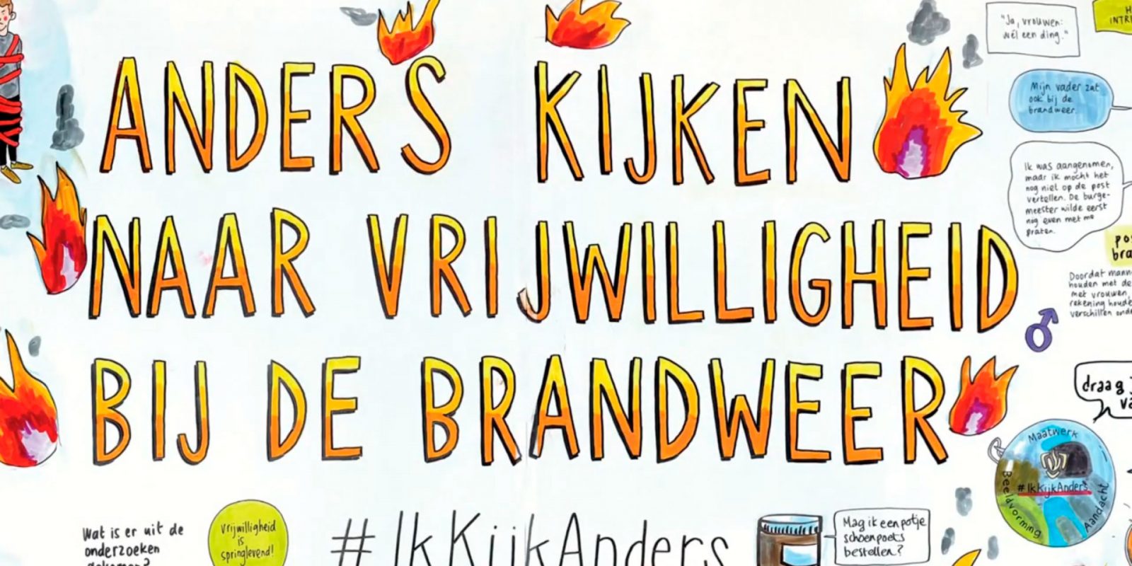 De rode draad van de onderzoeken is samengebracht in een verbindende analyse. Daaruit kwamen drie thema’s naar voren: maatwerk, aandacht en beeldvorming. Tijdens het afsluitende congres van het programma Vrijwilligheid werd de verbindende analyse gepresenteerd. Daarnaast werden er tijdens verschillende workshops ervaringen uitgewisseld en was er ruimte voor discussie. Van dit congres is een grote praatplaat gemaakt. De tekeningen uit deze praatplaat zijn gecombineerd met de uitkomsten van de ‘verbindende analyse’ en vervolgens verwerkt in de video ‘Anders kijken naar vrijwilligheid bij de brandweer’.