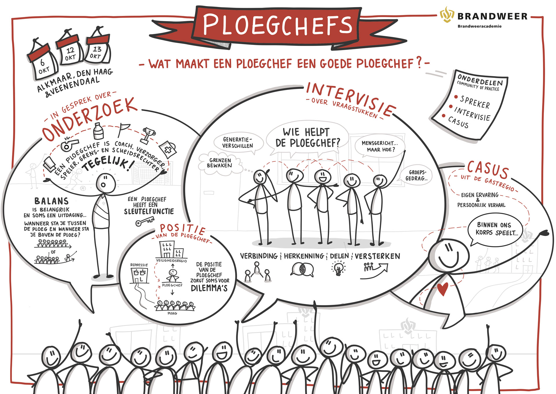 Uit een behoeftepeiling onder 349 ploegchefs werd bevestigd dat leren van elkaar en met elkaar in gesprek gaan als enorme meerwaarde wordt beschouwd. Daarom organiseert de Brandweeracademie een serie bijeenkomsten om ploegchefs (beroeps) en postcommandanten (vrijwillig) te ondersteunen bij dit soort sociale vraagstukken.