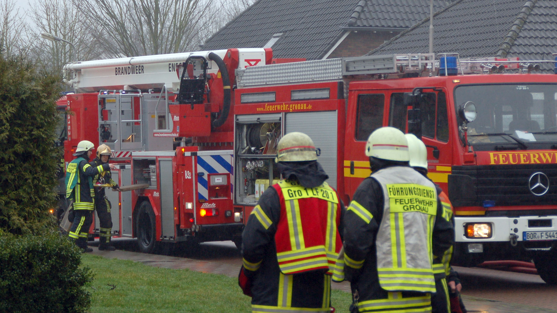 ‘Losser ligt aan de Duitse grens en daarom rijden we regelmatig naar de oosterburen om bijstand te verlenen. Ook komen onze Duitse collega’s naar ons toe. Zij zetten vooral hun hoogwerker in op Nederlands grondgebied, omdat deze voor ons dichterbij is dan de Twentse in Enschede gestationeerde hoogwerker. We zijn erg blij met deze samenwerking omdat hulpverlening geen grenzen kent. En de communicatie? Met een aardig woordje Twents kunnen we de oosterburen prima duidelijk maken wat de bedoeling is en vice versa!’
