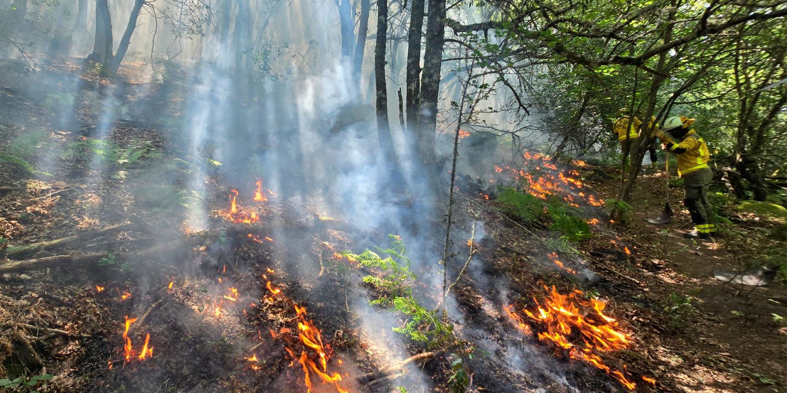 Ondertussen werd met behulp van een bulldozer een lijn rondom het dorp gemaakt en werden alle voorbereidingen getroffen om een tegenbrand aan te leggen, waarmee het doel was om de vegetatie rondom San Martiño gecontroleerd weg te branden om zo een buffer voor de oprukkende brand te maken. Doordat de wind draaide, ging de brand echter van het dorp af en was er geen directe noodzaak meer om deze tactiek toe te passen. Een deel van het team is toen verplaatst naar een boerderij in het natuurgebied, om hier te proberen de brand te stoppen. Ondanks een eerste succesvolle poging bleek na de winddraaiing dat de boerderij precies in het pad van de brand kwam en was het team genoodzaakt zich terug te trekken.