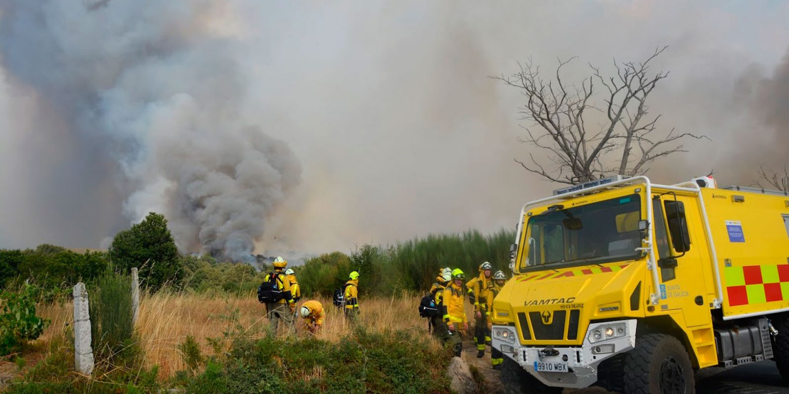 Het kondigde zich al enige tijd aan, want door de langdurige droogte is de kans op natuurbranden in met name het zuiden van Galicië en noorden van Portugal groot. In het weekend ontstonden er al diverse branden net over de grens in Portugal, waarbij de grootste brand zich daar vandaag meerdere kilometers uitbreidde en de brandweer er dus de handen aan vol heeft.