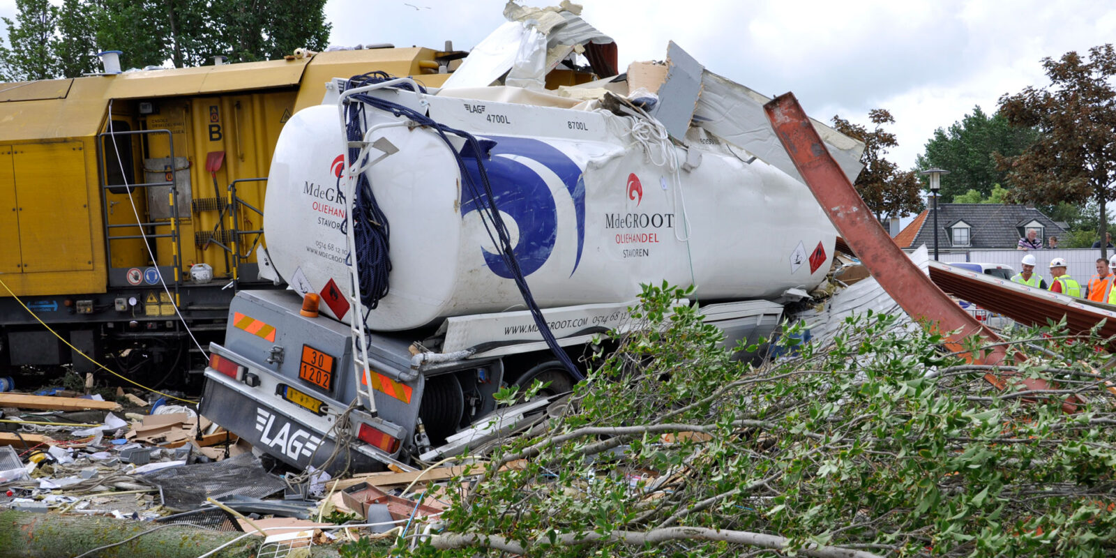 Gekantelde wagons, containers liggen op het spoor, overal brokstukken, kapotte spoorleiding en twee zwaargewonde machinisten zitten bekneld in de cockpit. De gevolgen van een frontale botsing tussen twee goederentreinen. Om de ramp compleet te maken, blijkt dat een trein tankwagens met LPG vervoert. Deze zijn beschadigd zijn en lekken.